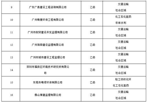 2016年第一批廣東省建設(shè)項(xiàng)目環(huán)境監(jiān)理資格行業(yè)評(píng)定獲證單位名單