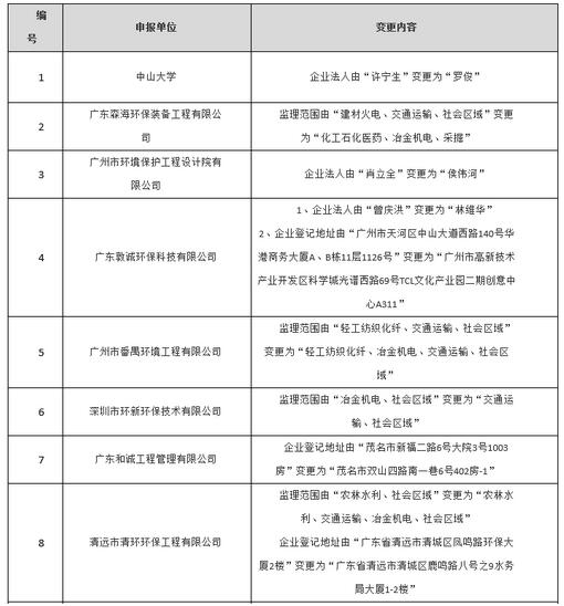 根據(jù)《廣東省建設(shè)項(xiàng)目環(huán)境監(jiān)理資格行業(yè)評(píng)定管理辦法(試行)》(粵環(huán)協(xié)〔2013〕32號(hào))的有關(guān)規(guī)定,我會(huì)對(duì)2016年第一批申報(bào)廣東省建設(shè)項(xiàng)目環(huán)境監(jiān)理資格行業(yè)評(píng)定的單位進(jìn)行了現(xiàn)場(chǎng)核查,經(jīng)廣東省建設(shè)項(xiàng)目環(huán)境監(jiān)理資格行業(yè)評(píng)定評(píng)審委員會(huì)審定及公示無(wú)異議后,批準(zhǔn)“珠江水資源保護(hù)科學(xué)研究所”等16家單位為2016年第一批廣東省建設(shè)項(xiàng)目環(huán)境監(jiān)理資格行業(yè)評(píng)定獲證單位,同意“中山大學(xué)”等11家單位的變更申請(qǐng),現(xiàn)將獲證單位及變更單位名單予以公布。
